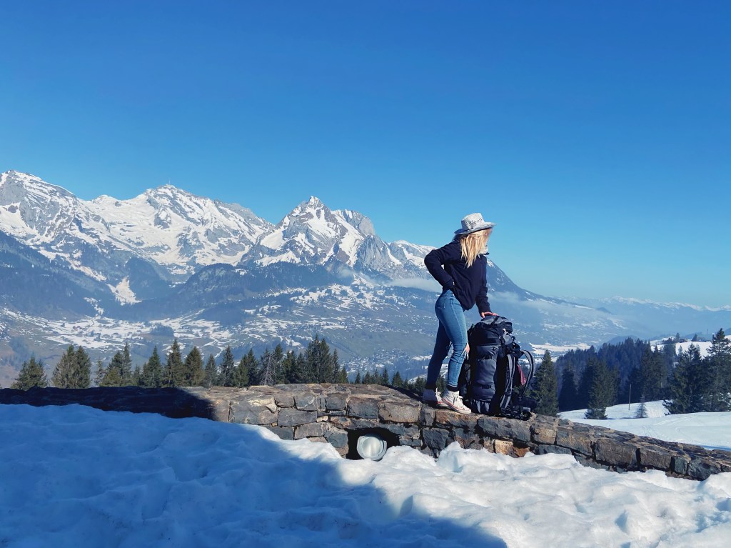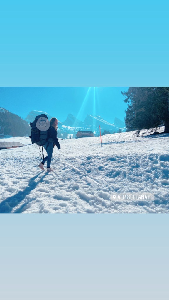 Nachdem Besuchs des Wasserfalles entschied ich das wir unbedingt in den Schnee auf einen der umliegenden Berge müssten. Auf die Alp Sellamatt fuhren wir mit der Gondelbahn. überall Schnee und Berge. Den ganzen Tag wanderten wir durch diese schöne Landschaft, entdeckten den Klangweg und trafen freundliche Menschen. Sorry Jason deine Bedingung wurde nicht eingehalten.